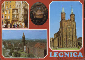 – Legnica – kościół NMP, olbrzymie kolumny; zamek, nie podobał mi się; kościół św. Piotr i Pawła, piaskowcowa ambona z królami(?), brązowa chrzcielnica, nagrobki (św. Wacław z żoną); stare miasto bez samochodów, ładne; Megasam, olbrzymi! Schronisko otwarli dopiero o 18:30, czekałem 1 h.