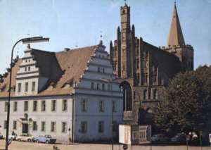 Dojechałem do Krosna. Mam nadzieję, że schronisko otworzą (na razie nikogo tam nie ma). Zjadłem tu obiad i zaraz pójdę oglądać to, co jest tu do oglądania. Po drugiej stronie Odry coś jest – pójdę tam jutro, bo jadę tamtędy a dziś jestem zmęczony. Lubsko – fajne miasteczko, ale bardziej niż późnogotycki ratusz i gotycki kościół farny (na odwrocie) podobała mi się brama z wieżą. Jutro nocleg w Ośnie lub Rzepinie; pojutrze Gorzów Wlkp. Wydaję 300 zł/dzień (pociąg do Wrocławia – 200 zł).