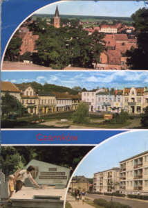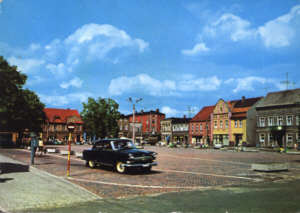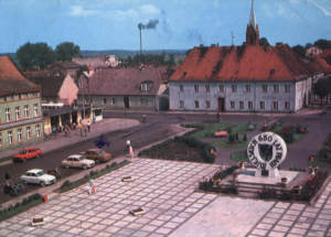 Jeszcze jedno małe miasteczko; zobaczyłem kościół gotycki (zamknięty) z czworobocznymi wieżami i zamek – bardzo zdewastowany, oprócz tego mały rynek + "stałe elementy krajobrazu*" – bez zmian. Dziś jeszcze 60km. *"Stałe elementy" to pomniki żołnierzy radzieckich tudzież jednostki wojskowe